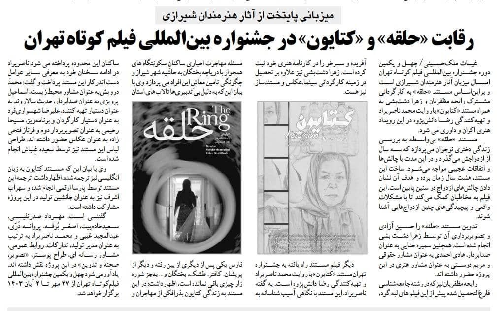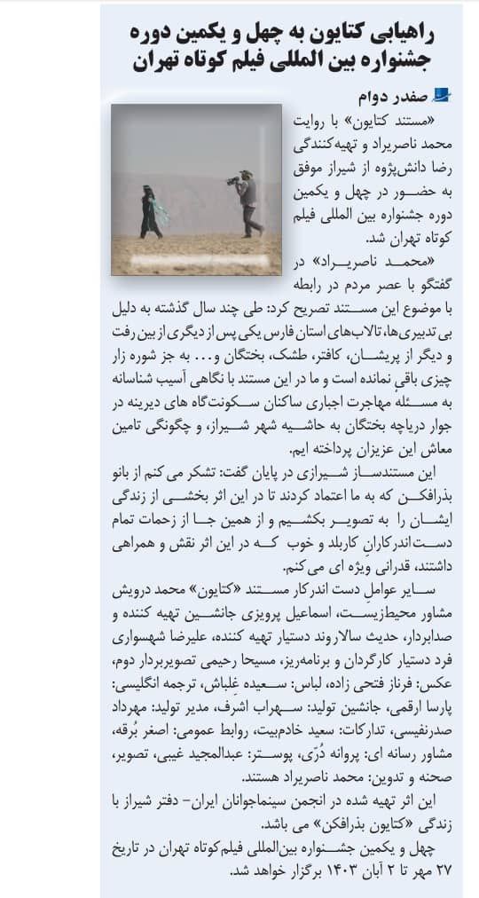 حضور در چهل و یکمین جشنواره بین المللی فیلم کوتاه تهران بخش مسابقه ملی سال ۱۴۰۳