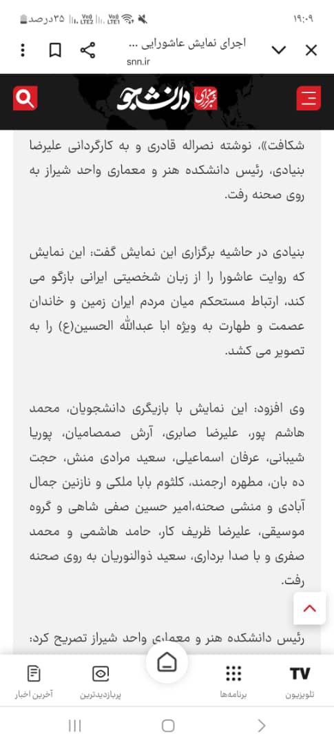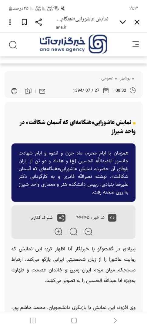 نمایش دانشجویی بر شانه های زخمی زینب پارکینگ دانشگاه هنر و معماری شیراز محرم ۱۳۹۳و حیاط دانشگاه پردیس محرم ۱۳۹۳یک هفته هم اجرای عموم روبه روی تالار حافظ