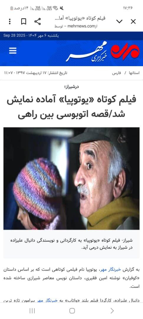بازی در فیلم کوتاه یوتوپیا به کارگردانی دانیال علیزاده