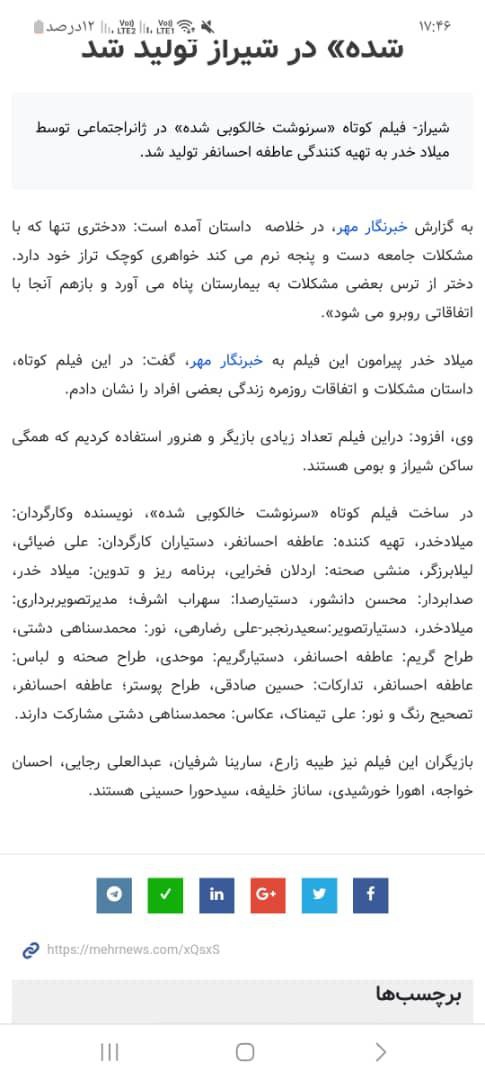 فیلم کوتاه داستانی دورتر از نزدیک کارگردان علیرضا اسدی برنامه ریز و منشی صحنه سهراب اشرف تولید 1398
