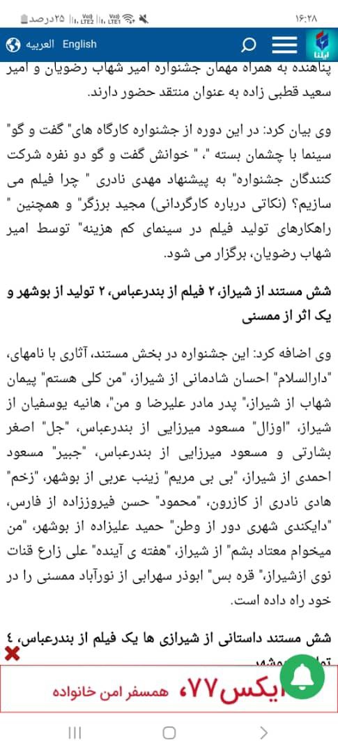 هفتمین جشنواره فیلم کوتاه شیراز مستند من کلی هستم سال 1394